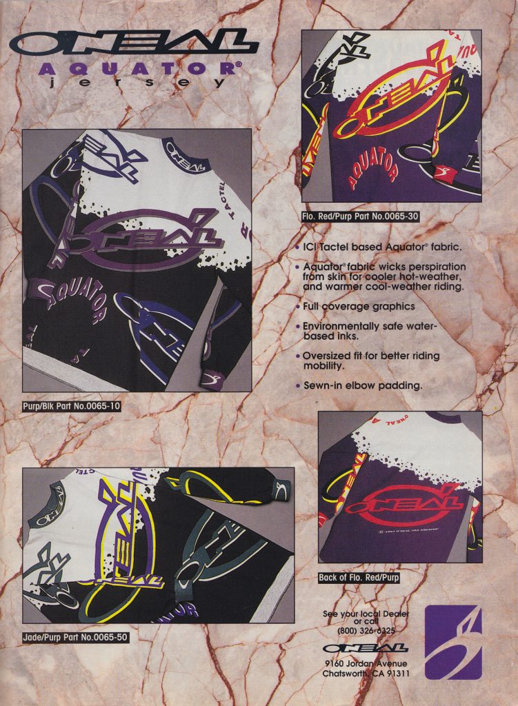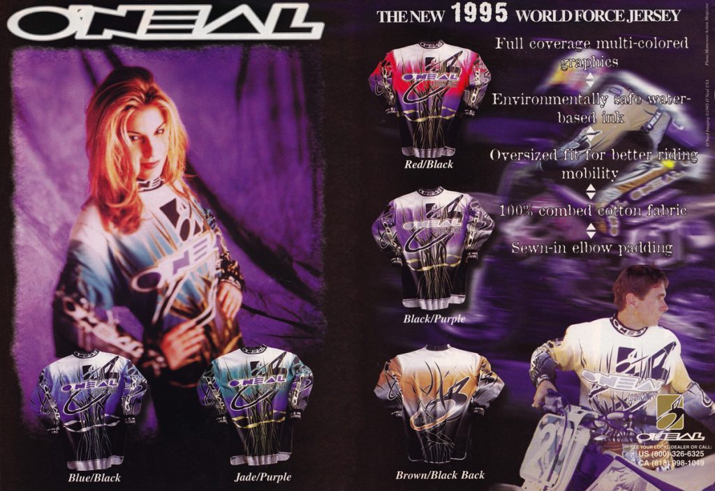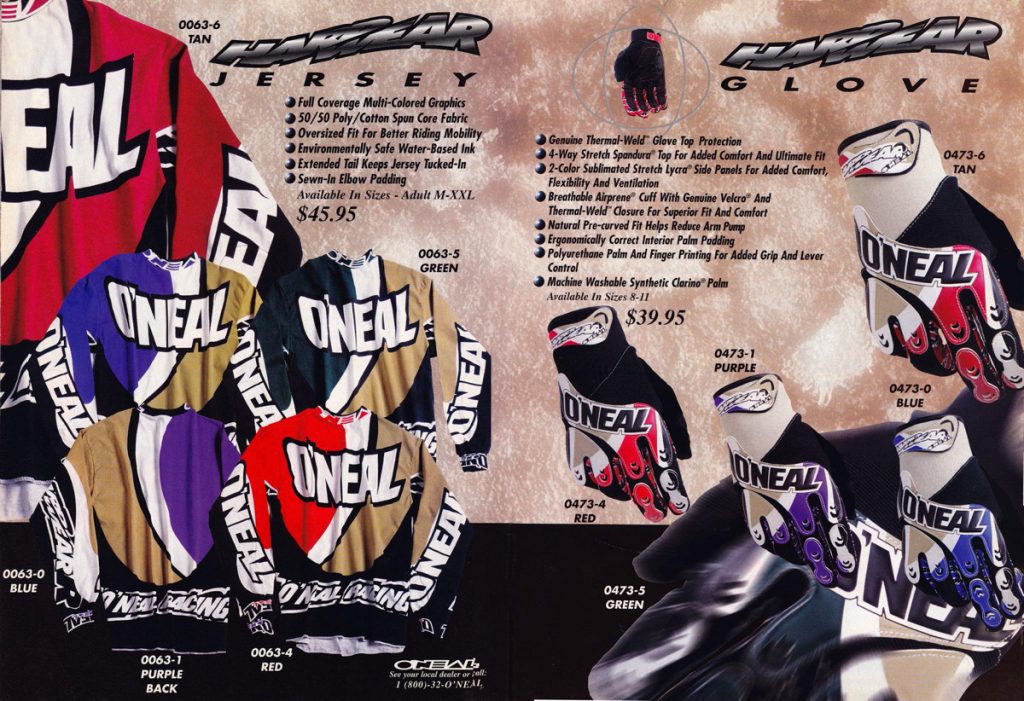 Matthes: It’s like for the entire 90s O’Neal is one year behind Fox and AXO. Fox introduced the earth tone colors in ’93 or ’94 so by ’95, O’Neal was onboard.