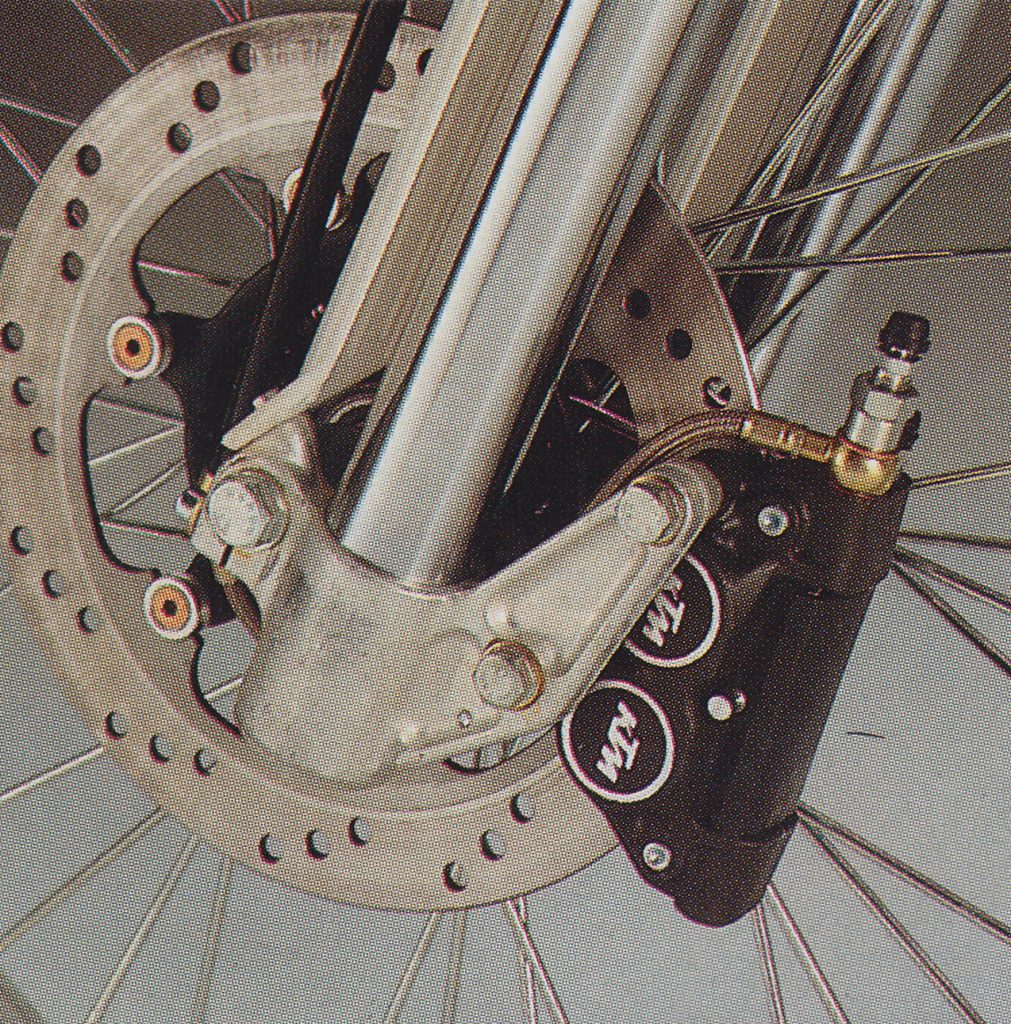 A new dual-piston front caliper for 1987 greatly improved the KTM’s previously mediocre braking performance. Photo Credit: KTM