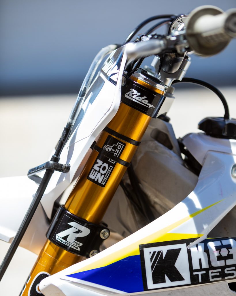 The Ride Engineering RM-Z450 triple clamps offer some real performance value ($549.99 clamps and $104.95 for the mounts) and are offered in a cool blue and black anodized look. An investment like this should offer some sort of performance advantage on the track, not just look pretty. The Ride Engineering clamps/mounts offer a change in the handling and to me it was mostly for the better. I say “mostly” because I did feel like the Ride Engineering clamps will fade if you leave your bike in the pits, under the sun too long. Make sure to cover up your front end with a towel so that the sun is not beating directly onto the clamps anodizing.