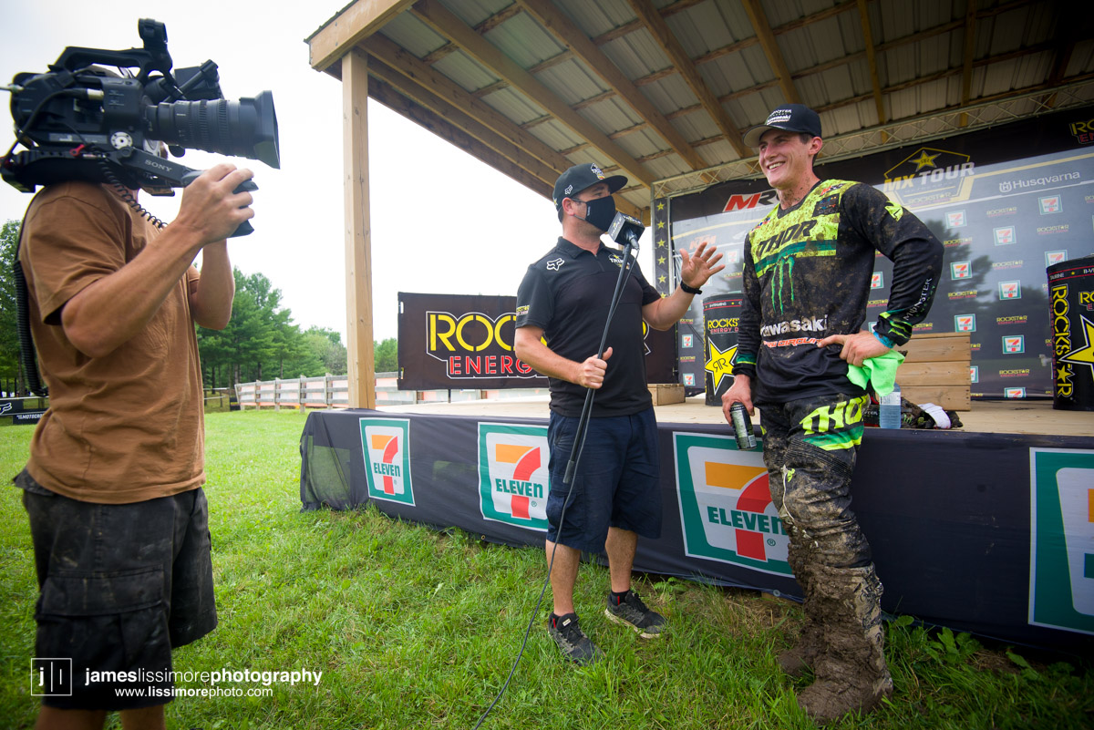 After the deep sand at Gopher Dunes for round one, we were a couple hours north at the hard packed, Walton Raceway, for round two of the 2020 Rockstar Energy Canadian MX Tour series. With the two day format, things started out hot and dry for Saturday’s opening moto but a big thunderstorm early Sunday morning meant the riders would looking at mud moto to start day two.