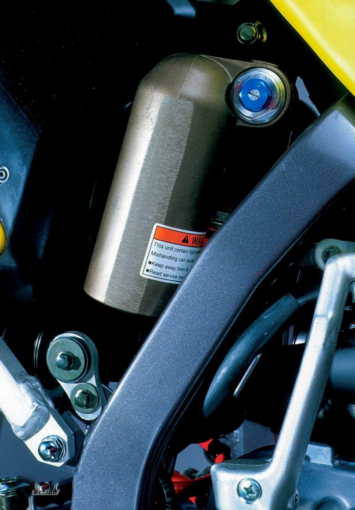 An all-new shock for 2001 added high and low-speed compression damping for increased adjustability. Photo Credit: Motocross Action.