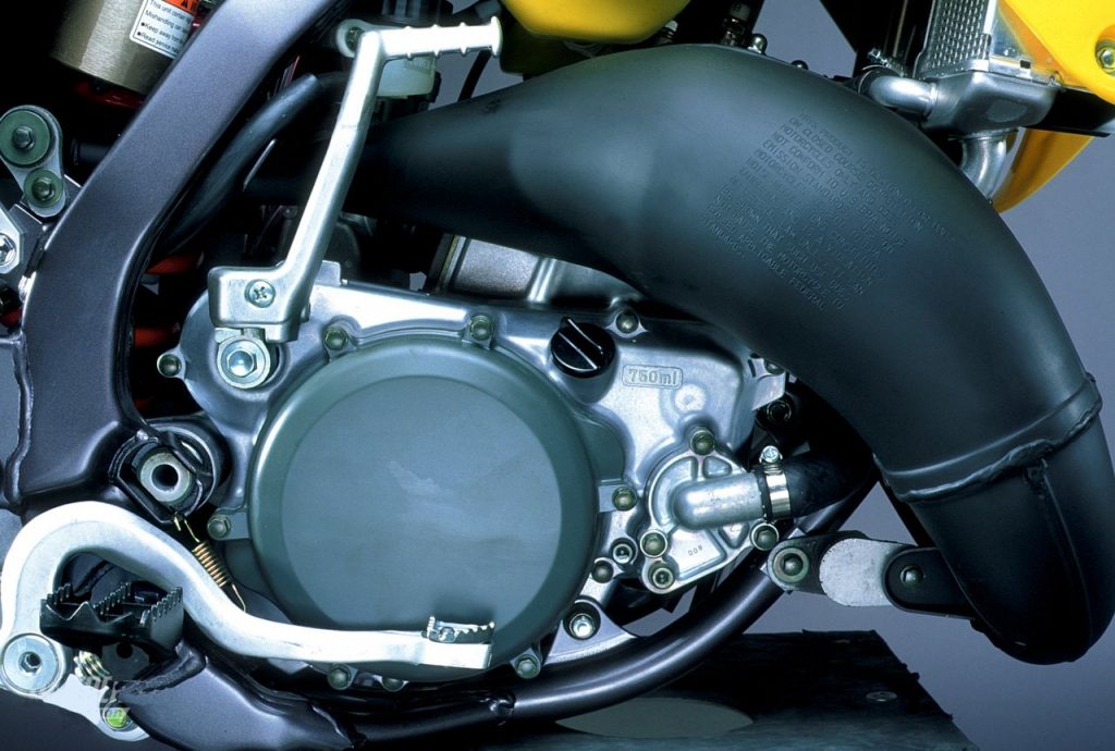 An all-new cylinder and reshaped power valve looked to boost top-end power for 2001. Photo Credit: Suzuki