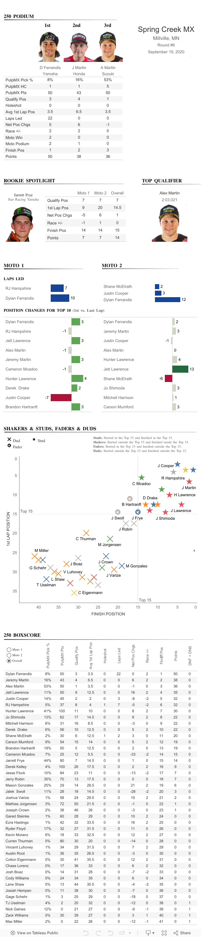 - Jarrett Frye (Star Racing Yamaha) takes the Rookie Spotlight this week after going 14-14 in his pro debut. Not bad for a rookie and the 49th roster slot on the team.