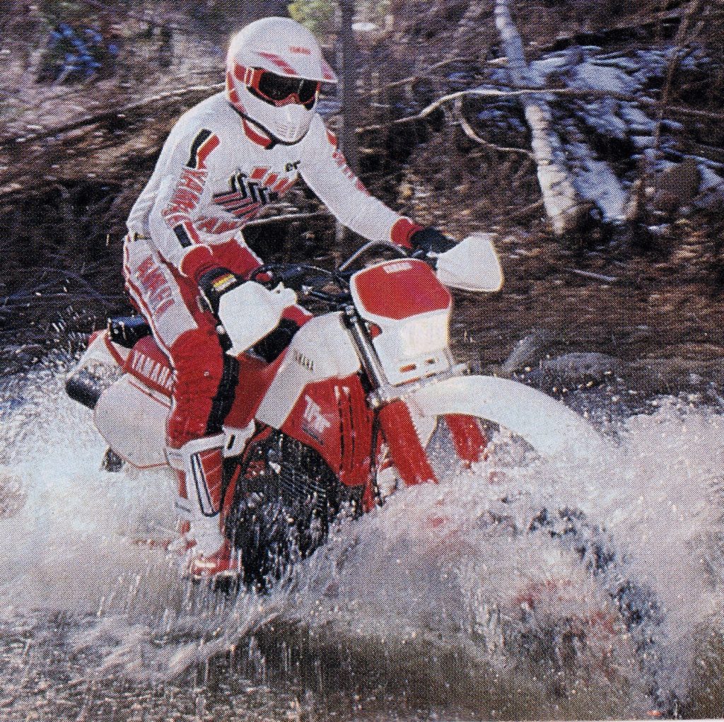 With smooth tractable power, a well-sealed airbox, and plush suspension, the TT350 was the perfect machine for creek storming missions in 1986. Photo Credit: Mark Kariya