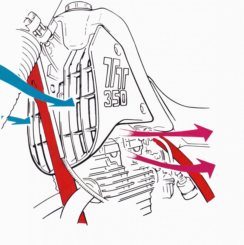 While the TT350’s motor lacked liquid-cooling, Yamaha was careful to learn from the overheating issues that plagued early Honda XRs and designed a set of substantial cooling vents into the TT’s tank to keep fresh air flowing to the Yamaha’s head. Photo Credit: Yamaha