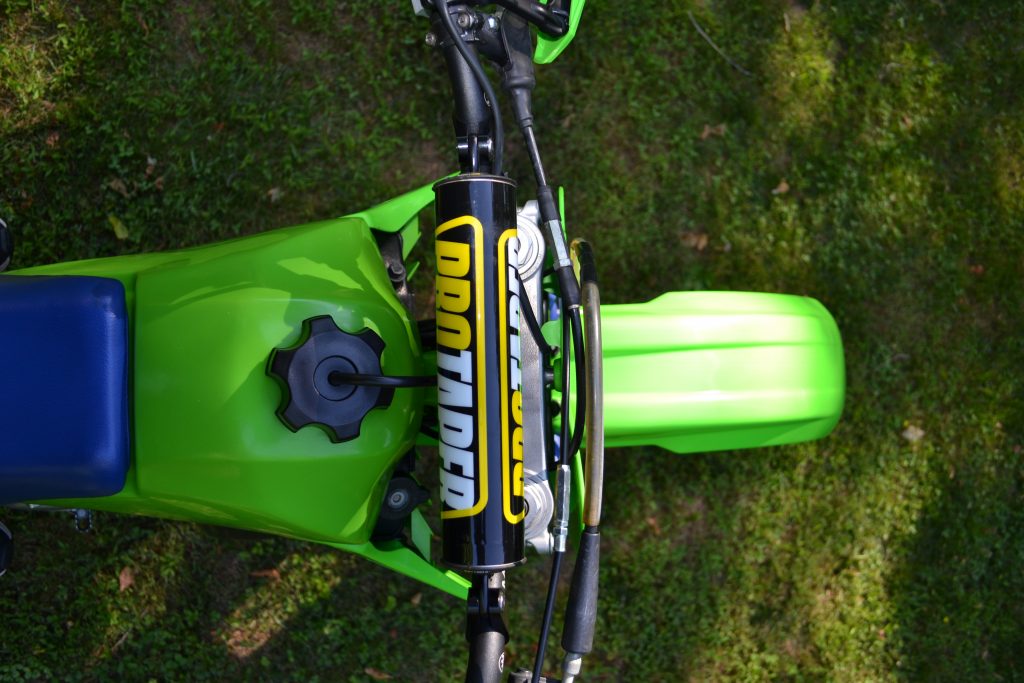 All-new bodywork for 1988 revised the looks and increased the width of the KX250 considerably. While many riders questioned the wisdom of this change when comparing the green machine to the new razor-thin Honda, off-roaders did appreciate the additional 0.6 gallons of capacity the new jumbo tank afforded. Photo Credit: Me
