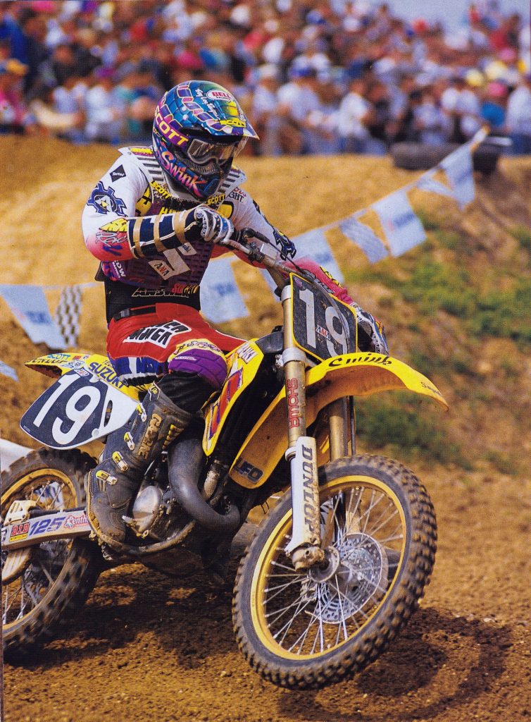 After a lackluster 10th place in the 1992 outdoor standings, Factory Suzuki’s Brian Swink piloted the all-new RM125 to a much-improved 5th overall in 1993. Photo Credit: Dirt Bike