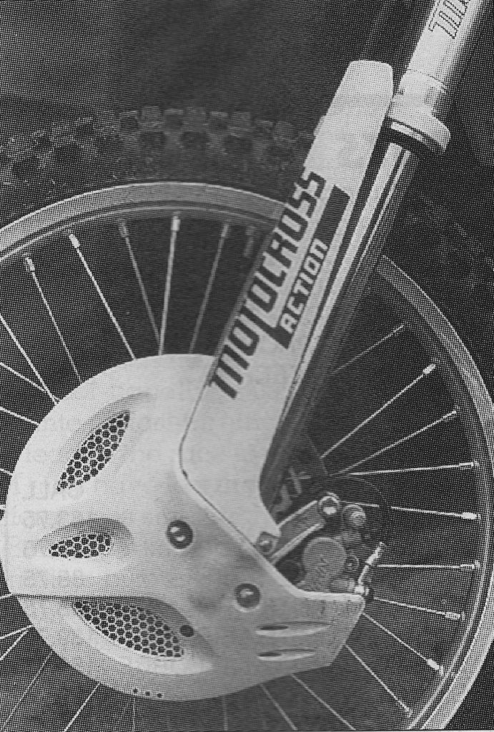 New metallic pads and beefed-up calipers gave the RM125 some of the best brakes on the track in 1993. Photo Credit: Motocross Action