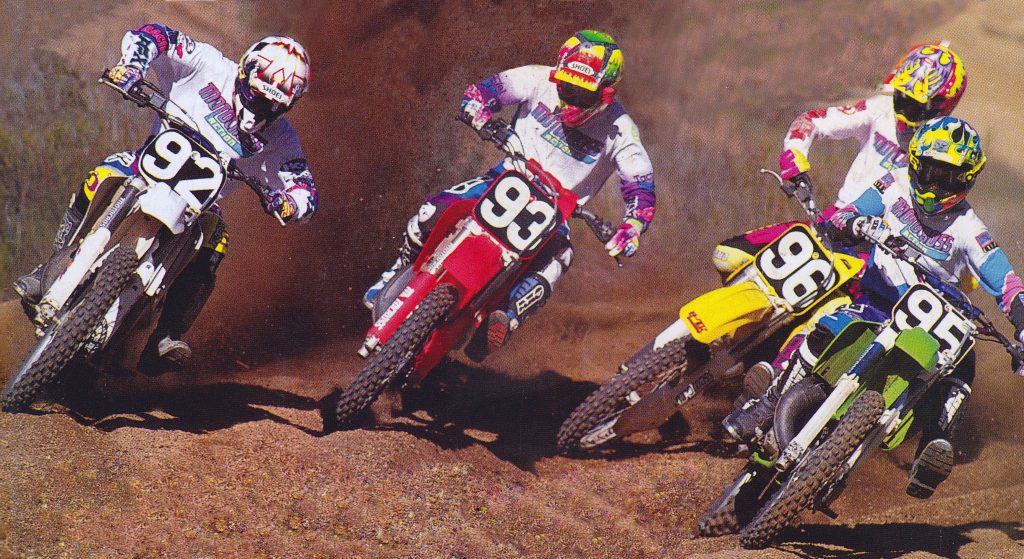 In 1993, the best all-around machine in the 125 class was Kawasaki’s KX125. Its broad powerband and supple suspension made going fast easy. At the other extreme was Honda’s pro-focused CR125, which demanded skill to make the most of its harsh suspension and high-strung motor. In between these two standouts was the RM125 with its hard-hitting midrange motor and lithe handling. All three could win in the right hands but aside from some disconcerting reliability issues, the Kawasaki covered all the bases the best in 1993. Photo Credit: Motocross Action.