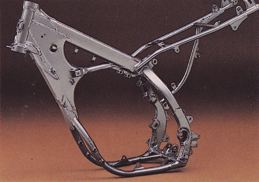 For 1993, Suzuki looked to build on their 125 class success by refining, reshaping, and restyling their RM125. In 1992, the RM125 had received an all-new frame which had upped chassis rigidity by 25 percent and endowed the yellow (and white, and purple, and pink) 125 with the sharpest turning on the track. For 1993, Suzuki once again upped the chassis rigidity by beefing up the box-section backbone of the frame. Overall geometry was unchanged, but Suzuki claimed another 30 percent increase in chassis strength over 1992.
