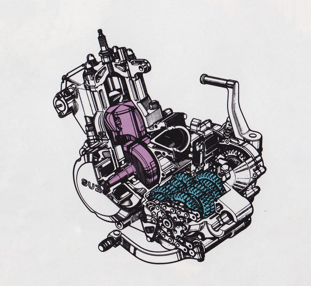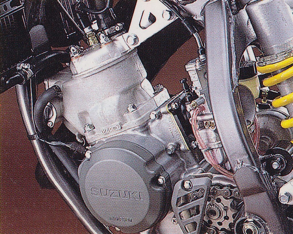 Motor changes for 1993 included an all-new cylinder, revised AETC, rebalanced crank, larger carburetor, and revised exhaust. Photo Credit: Suzuki