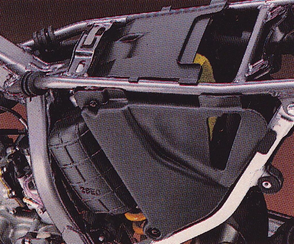 An all-new airbox for 1993 offered 20 percent more airflow and a set of bolt-on outer covers that added to the bike’s beefy midsection. Photo Credit: Suzuki
