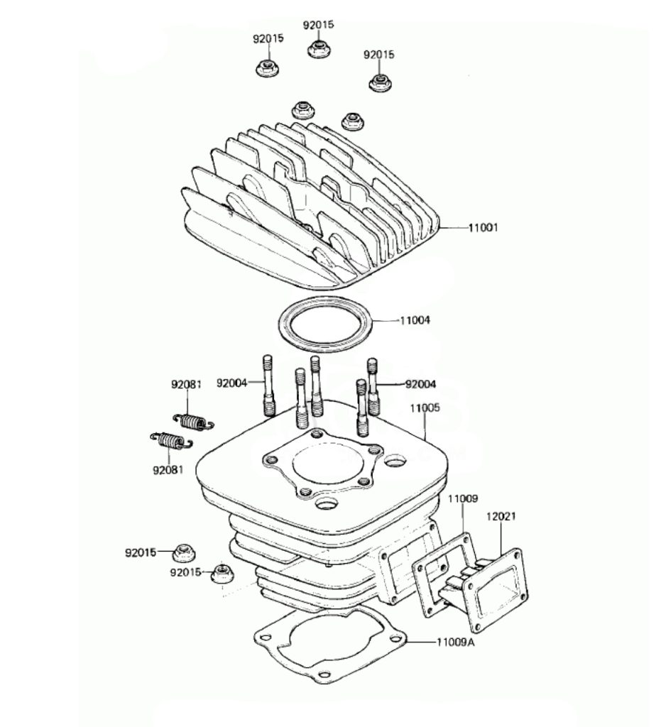 An all-new cylinder for 1980 featured porting cribbed from the road-race department in an effort to boost top-end power. Photo Credit: Kawasaki