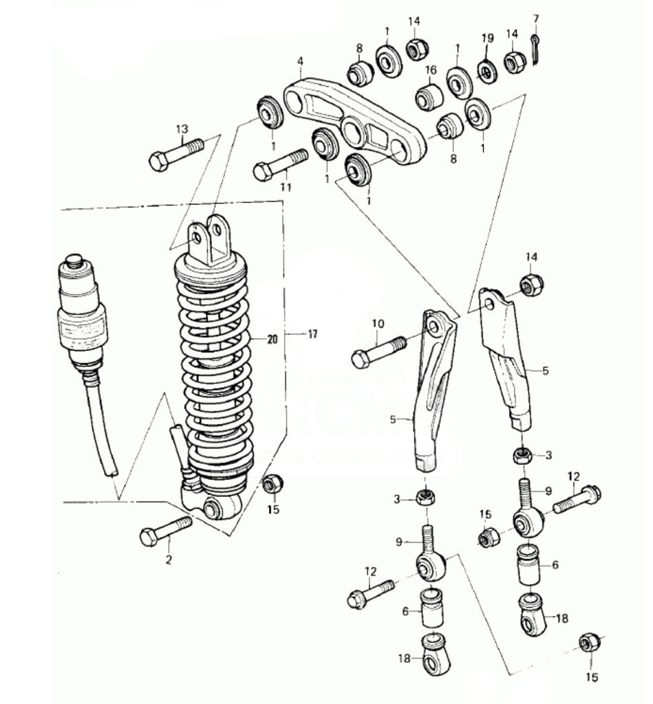 The Uni-Trak’s many levers and pivot points required regular servicing to keep them in proper working order. If neglected, the linkage would develop play and eventually crack the frame at the upper mounting. Photo Credit: Kawasaki