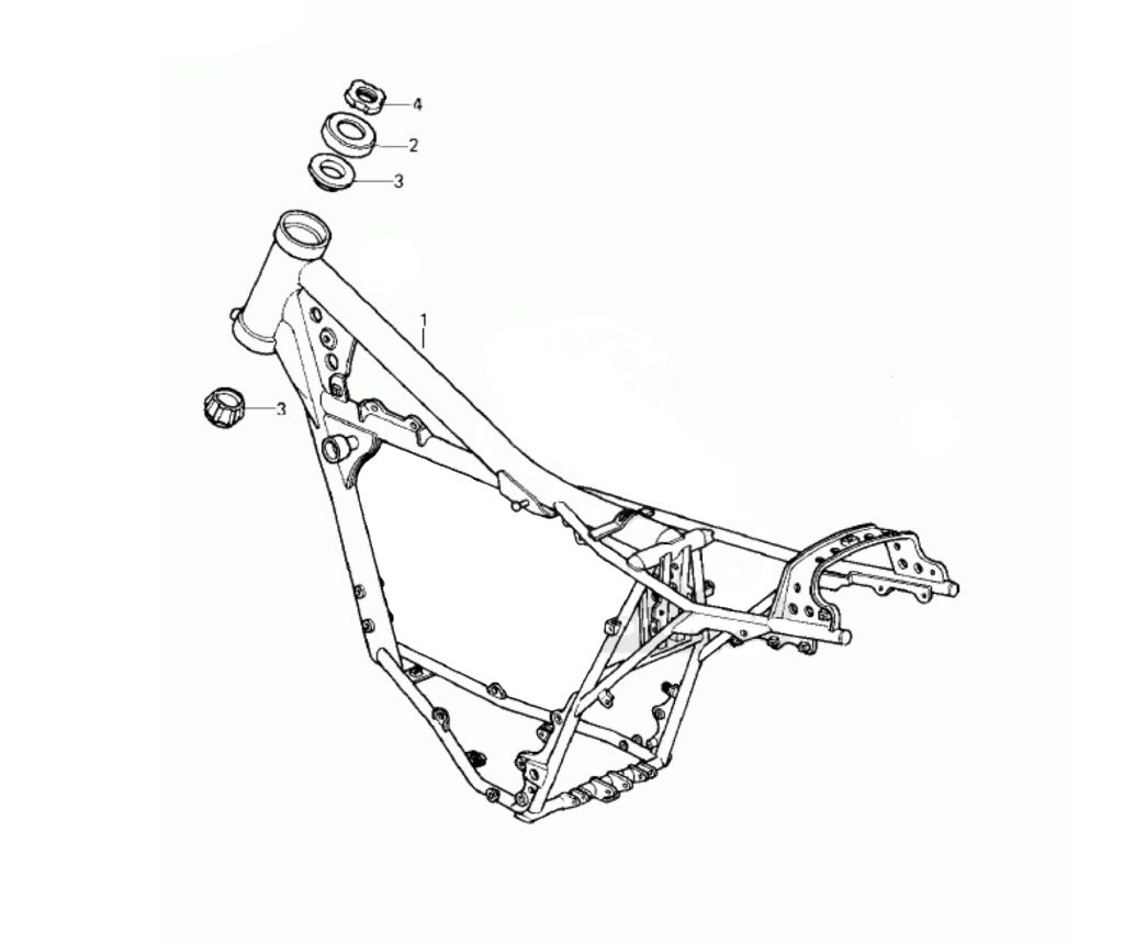 The KX125’s frame was crafted of tough chromoly steel and featured a conventional design aside from the unique mounting points required by the Uni-Trak suspension. Photo Credit: Kawasaki