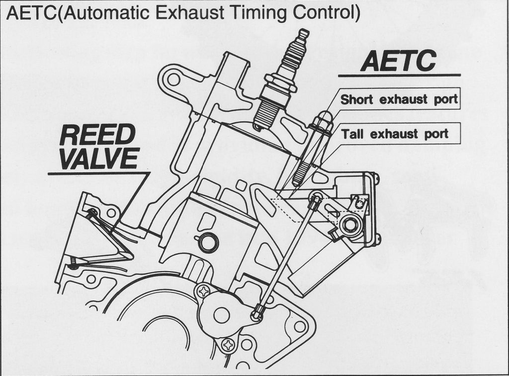 The 1992 Suzuki RM125 continued to use the same basic AETC variable exhaust valve system the yellow team had employed since 1987. Similar in theory to Honda’s HPP and Yamaha’s YVPS, the AETC employed a pair of sliding guillotine valves to vary the height of the exhaust port to optimize power. Photo Credit Suzuki