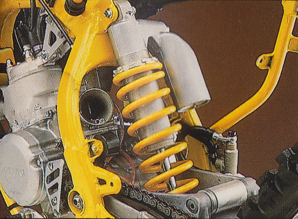 A beefed-up linkage and all-new shock promised improved suspension performance for 1992. Photo Credit: Suzuki