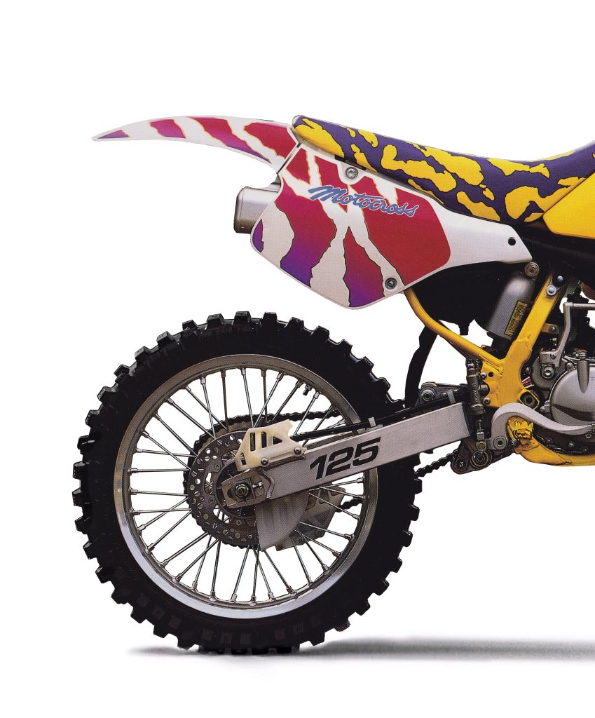 In 1992, Suzuki unveiled the most outlandish-looking line of motocross machines ever. Thankfully, underneath those clown-show graphics beat the heart of a winner. Photo Credit: Suzuki.