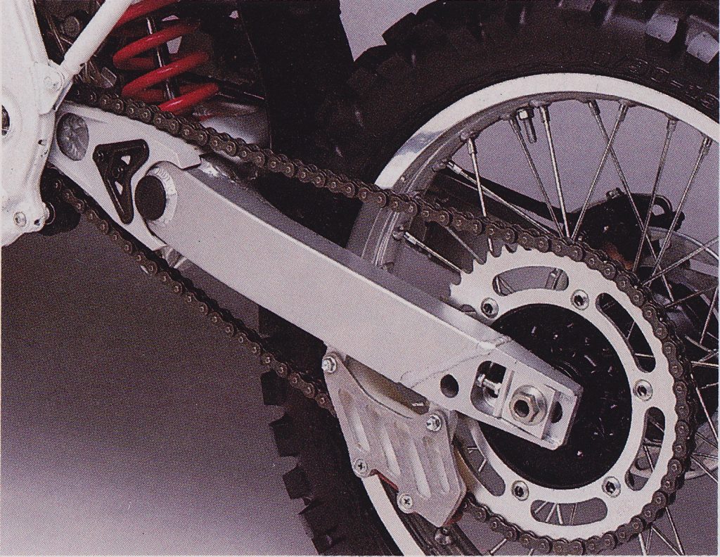 An all-new swingarm, beefed-up chain guide, and revised chain buffer were all welcome changes on the YZ250 in 1989. Photo Credit: Yamaha
