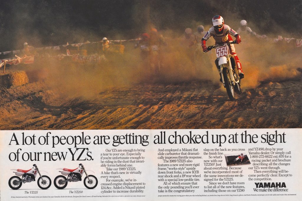A fairly unknown rider from La Porte, Indiana by the name of Mike LaRocco starred in Yamaha’s ad for the new YZs in 1989. Photo Credit: Yamaha