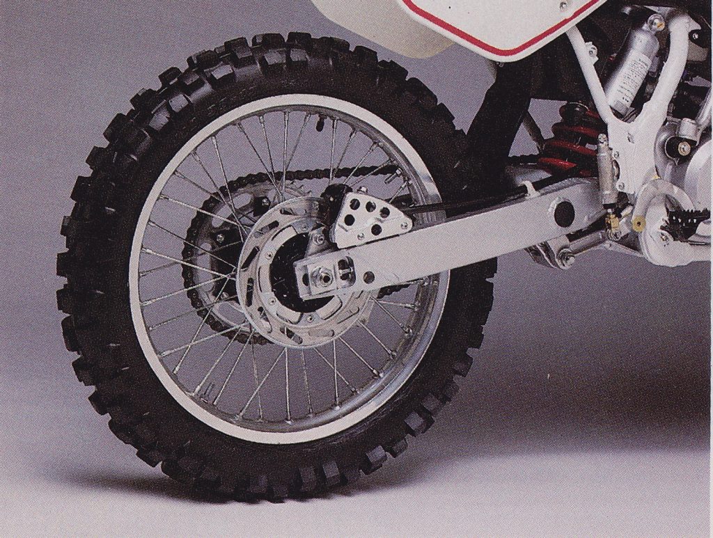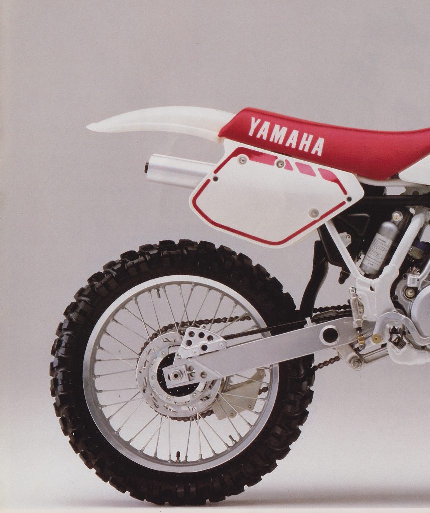 Aside from the inverted forks, the other large shift in the motocross industry in 1989 was the move to 19” rear wheels. This larger hoop promised improved cornering and traction by reducing sidewall flex under heavy loads. While many were skeptical of this change initially, the 19” wheel has withstood the test of time. Photo Credit: Yamaha
