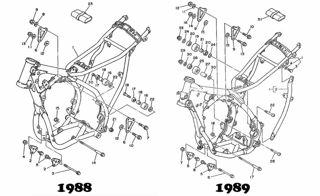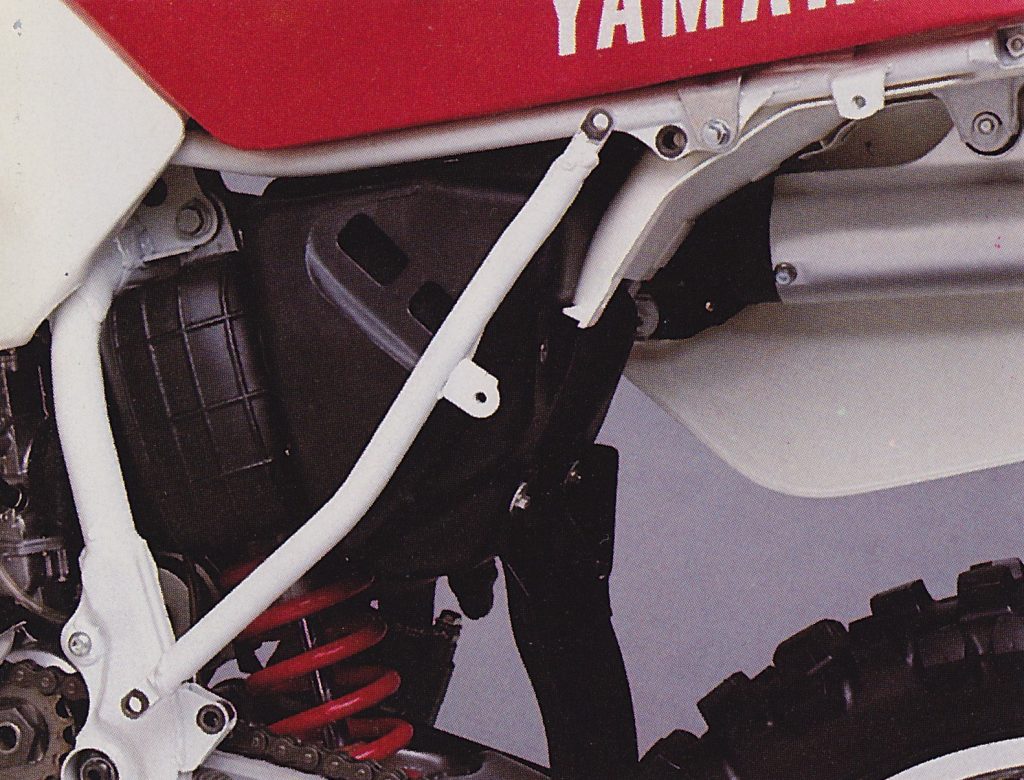 Another significant upgrade for 1989 was the addition of a removeable bar on the rear of the frame to make shock and airbox access easier. Photo Credit: Yamaha