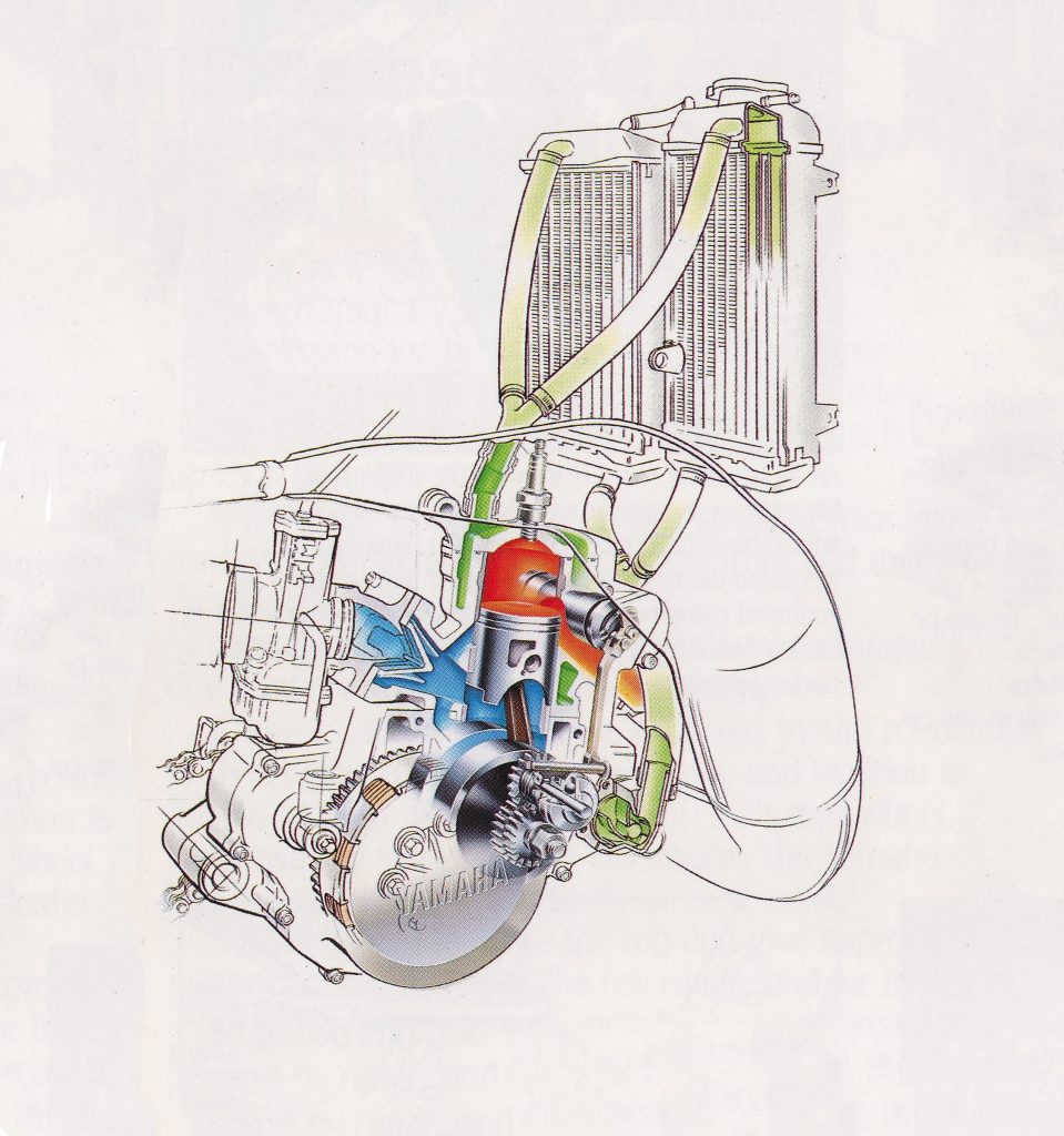 To accomplish this the engineers spec’d an all-new cylinder for 1989. The new jug featured revised porting and a massaged power valve. The YPVS timing was altered to open 250 rpm later and the compression was increased slightly through the use of plugs in the crank. A new reed valve was installed that reduced the count from eight pedals to six for increased intake velocity and an all-new pipe and silencer were bolted on that were designed to reduce sound, improve ground clearance, and increase top-end power. The new pipe also tucked in better to reduce the chance of burning the rider’s leg and lowered vibration by adding an additional mounting point to the frame.