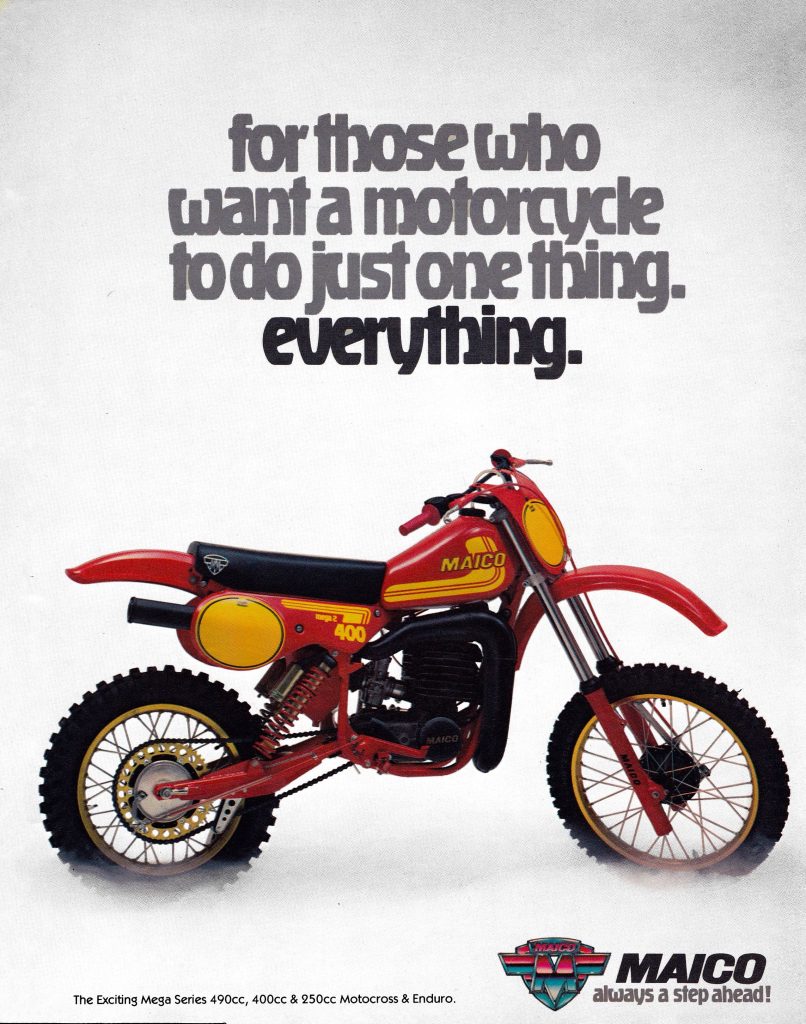 The all-new Maico MC490 Mega 2 hit the market in 1981 and took the 500 class by storm. Despite its dual shocks and low-tech motor, the mighty Maico outsold Honda’s entire ’81 motocross lineup combined.