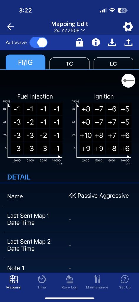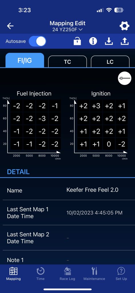 If you get your 2024 Yamaha YZ250F and it runs a little dirty/rich down low, have no fear, these maps should help this and help with manipulate the power a little. the Keefer Free Feeling Map 2.0 will get you less engine braking (maybe a little less torque), but pull stronger through mid-top end.