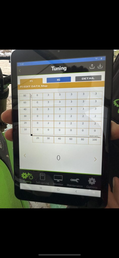 Rideology KX App: This is going to be an ever evolving thing. This app is new and we are new to it. I will say that it is a little weird that we just can’t simply load two maps into the machine. From what we are told that if you download a tune into the smoother map (light on) no matter what you put into that map (light on) it will always have a smoother value to it. Confusing I know. If you change your tune for (light off) the values that you put into your tune will ACTUALLY be what you change it to. Besides this confusion, the app is a nice touch and allows the consumer to customize his/her KX450. The interface is not difficult to navigate and is similar in a lot of ways to the Yamaha Power Tuner App. Like we mentioned above, we are on the “Cha 24” map as of right now but we will be working on some more ignition settings in the coming days.