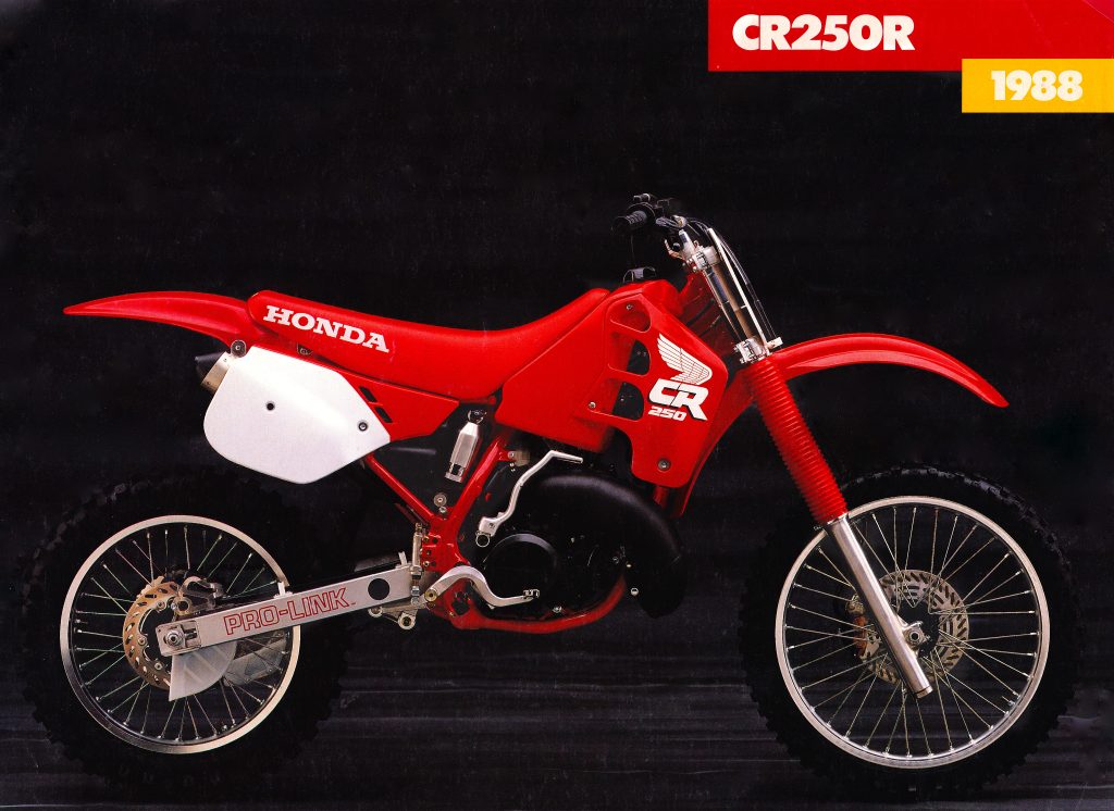 1988 Honda CR250R: Of all the all-new machines introduced in 1988, it is hard to argue that the most anticipated was not Honda’s CR250R. In 1987, the CR250R was the unanimous choice for the best 250 in the land and the exotic new ’88 looked to continue that win streak with sexy new “low boy” bodywork and a luscious coat of Ferrari red paint. Unfortunately, changes made to the motor and suspension for 1988 quickly sapped away the enthusiasm for the CR’s lusty looks. The CR’s magic cartridge forks and previously unparalleled HPP motor pulled major endos as the red machine transitioned from the most anticipated to the most disappointing machine of 1988.