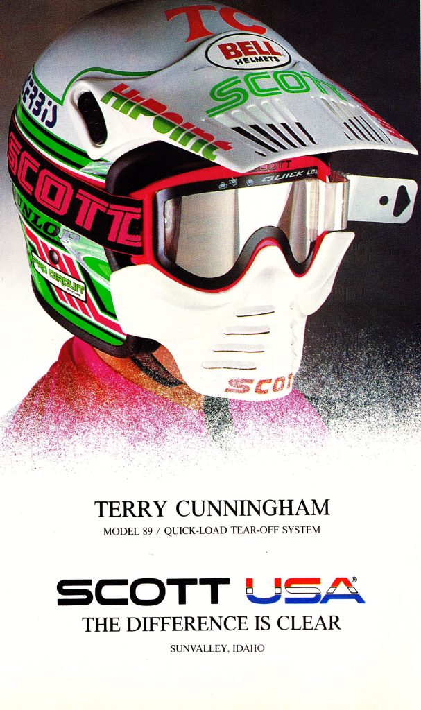 In 1989, four-time AMA National Enduro champ Terry Cunningham was one of the few holdouts on the National circuit still running an open face with SCOTT’s iconic “Venturi” face mask.