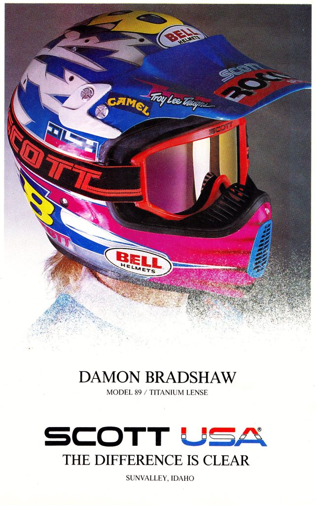 By 1990, the motocross goggle market had become much more crowded with major players like Oakley and Smith offering a wide variety of accessories and styles. While the market was full of competition, SCOTT USA remained the top choice for many of the sport’s elite. In this ad campaign from 1990, you get a good look at how many of motocross and off-road racing’s biggest stars were SCOTT athletes at the time. It also provides a great look at some of the awesome custom paint jobs that had become the rage only a few years earlier.