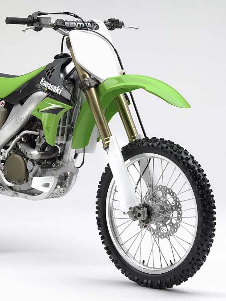 The new 47mm Showa Twin Chamber forks proved to be an excellent addition to the new KX250F. Relatively plush and well damped, they were rated as some of the best forks available in the class in 2006. Photo Credit: Kawasaki