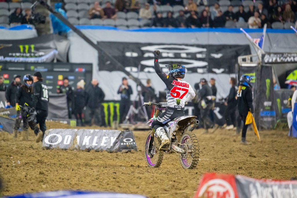 AP7: It’s pretty cool when almost ALL of the riders come to congratulate you after you just won your first AMA SX! Plessinger has been at this for some time now and even though I think this should have been his second win of his career, it was nice for him to do it in San Diego, especially since it is so close to the KTM offices! Let’s also give some credit to KTM for getting the bike better in 2024 and listening to some things in 2024 that should of happened in 2023. I may or may not have had spun some laps on the new frame and I can say that it is a more compliant KTM! Oh and can you believe that AP has the red plate! Where was AP in the SX Preview videos on Racer X? Ehhhhhhh. Yea, I don’t know either! Going to be cool to see how AP handles the red plate and if he can get back on that podium come A2! We will actually have a dry race track for next Saturday night!