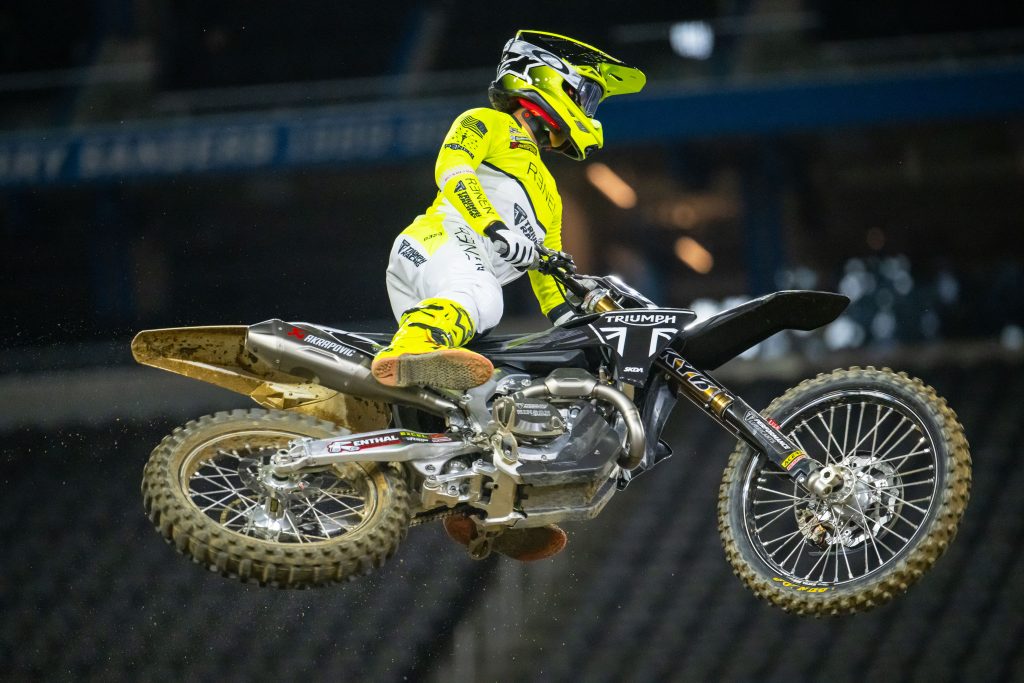 Jalek Swoll: Jalek made history! He is the first rider to put a Triumph motorcycle into an AMA Supercross Main Event! I know first hand that this kid has been putting the work on/off the bike. Guided by AMA National Champion Mike Brown, Jalek came from a first turn pileup to sixth. Impressive! That also shows me (and hopefully you) that he has some grit inside of him. It’s hard to pick yourself up off the ground and get back into race pace, but “Swoll-der” (that’s mine) did just that. I am sure he wants more, but a sixth place for your first race back in over a year is pretty damn decent. I am sure the team is happy about both riders getting into the main event and it shows others that this bike is good as well.