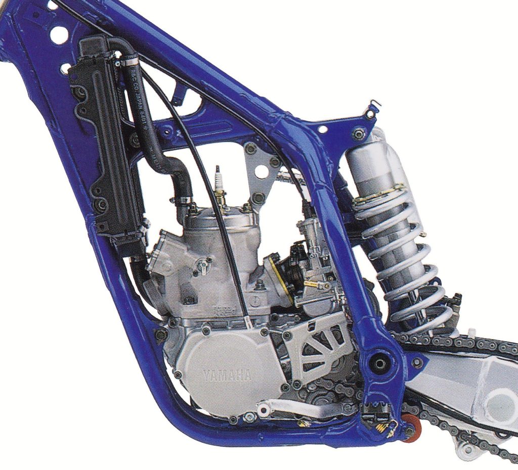 Aside from changes required to accommodate the new motor the YZ’s frame was unchanged from the year before. The Why-Zed was already regarded as one of the best-handling machines in the class and Yamaha chose to maintain the same geometry for 1999. Photo Credit: Yamaha
