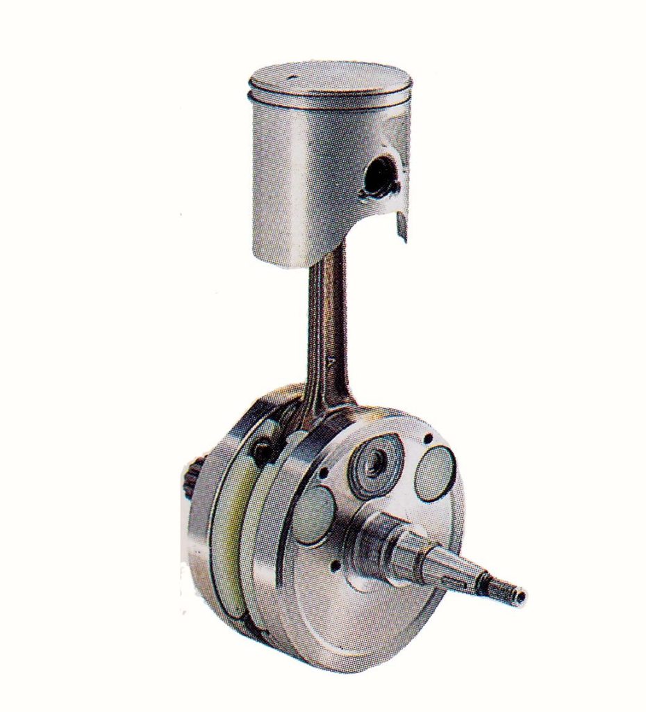 An all-new crank for 1999 was lighter and featured a longer stroke than in the past. The new piston was lighter and maintained a double-ring design for optimal sealing and longevity. Photo Credit: Yamaha