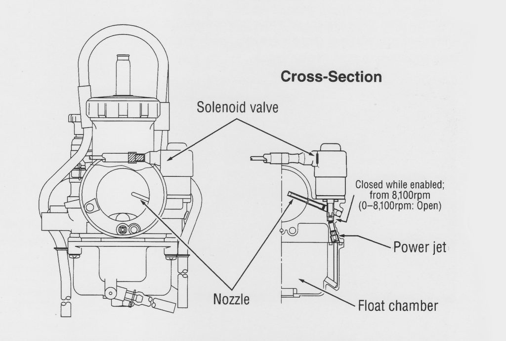 The ’99 YZ’s carburetor was all-new and featured a solenoid-controlled “Power Jet” that fed additional fuel to the motor below 8000 RPM to boost low-to-mid response.
