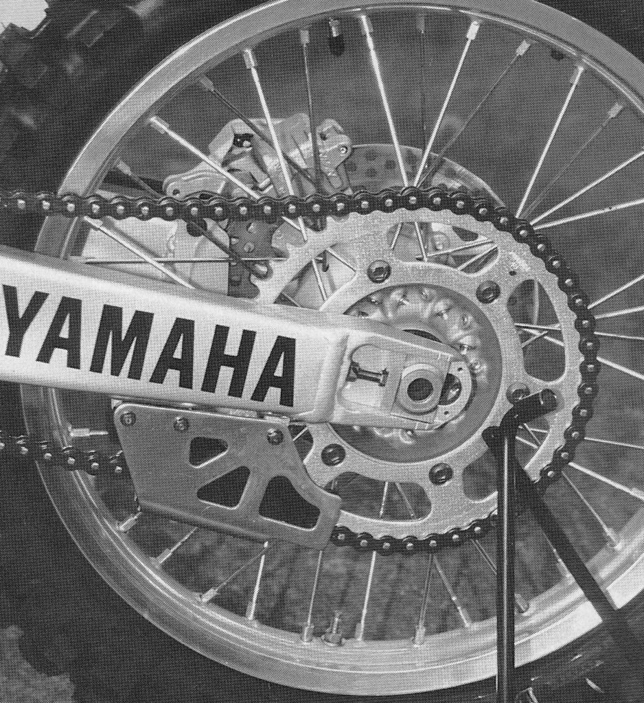 Bodywork remained unchanged from 1998 except for the handsome new “works” graphics that mimicked the designs seen on the 1998 factory Yamaha machines. The bars, seat, and brakes were all carryovers. New wheels front and rear added Takasago Excel rims, a 2mm larger axle in the rear, 1mm larger spoke nipples, and lighter weight hubs. All told, Yamaha’s weight-saving measures for 1999 added up to a 2-pound reduction in weight.