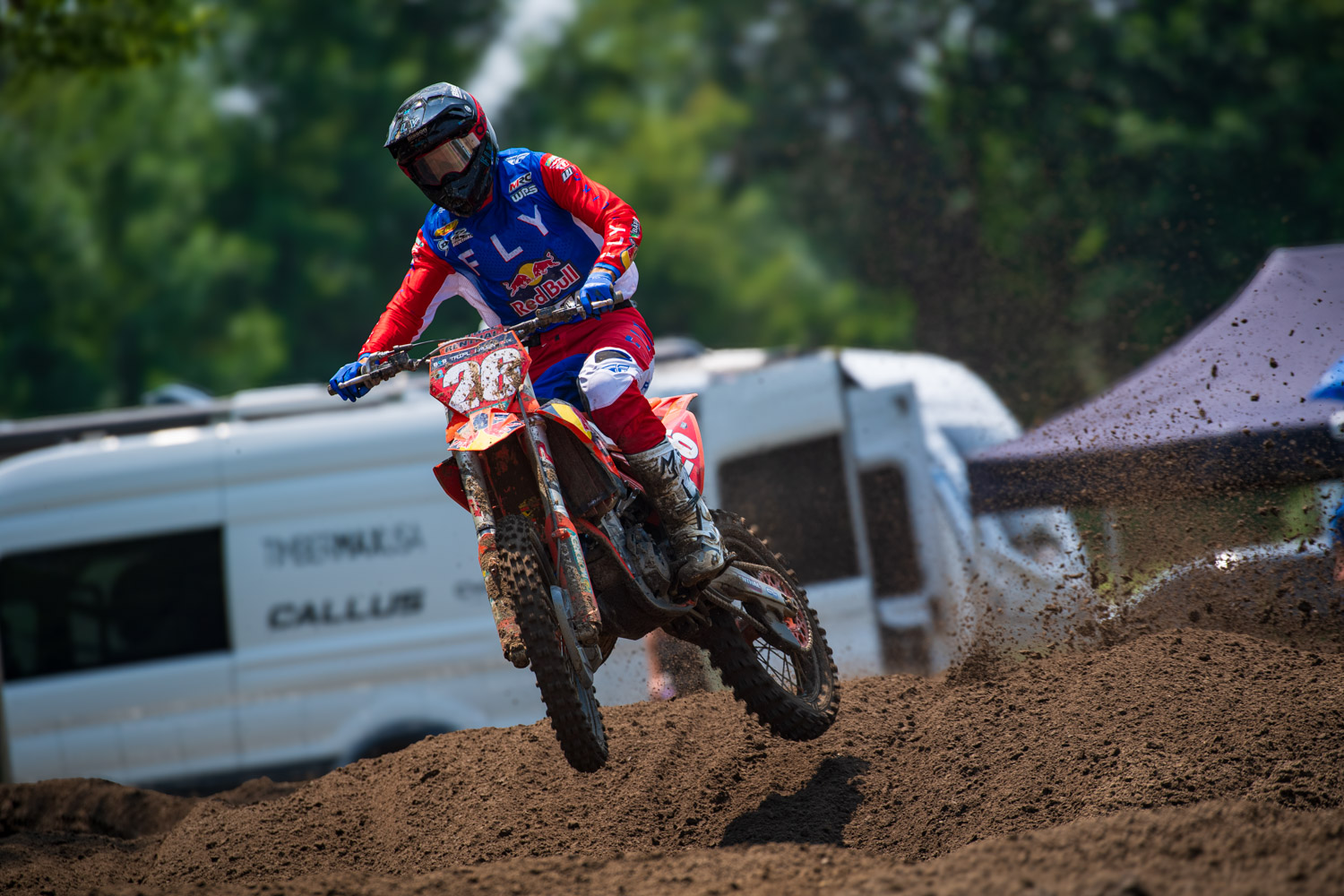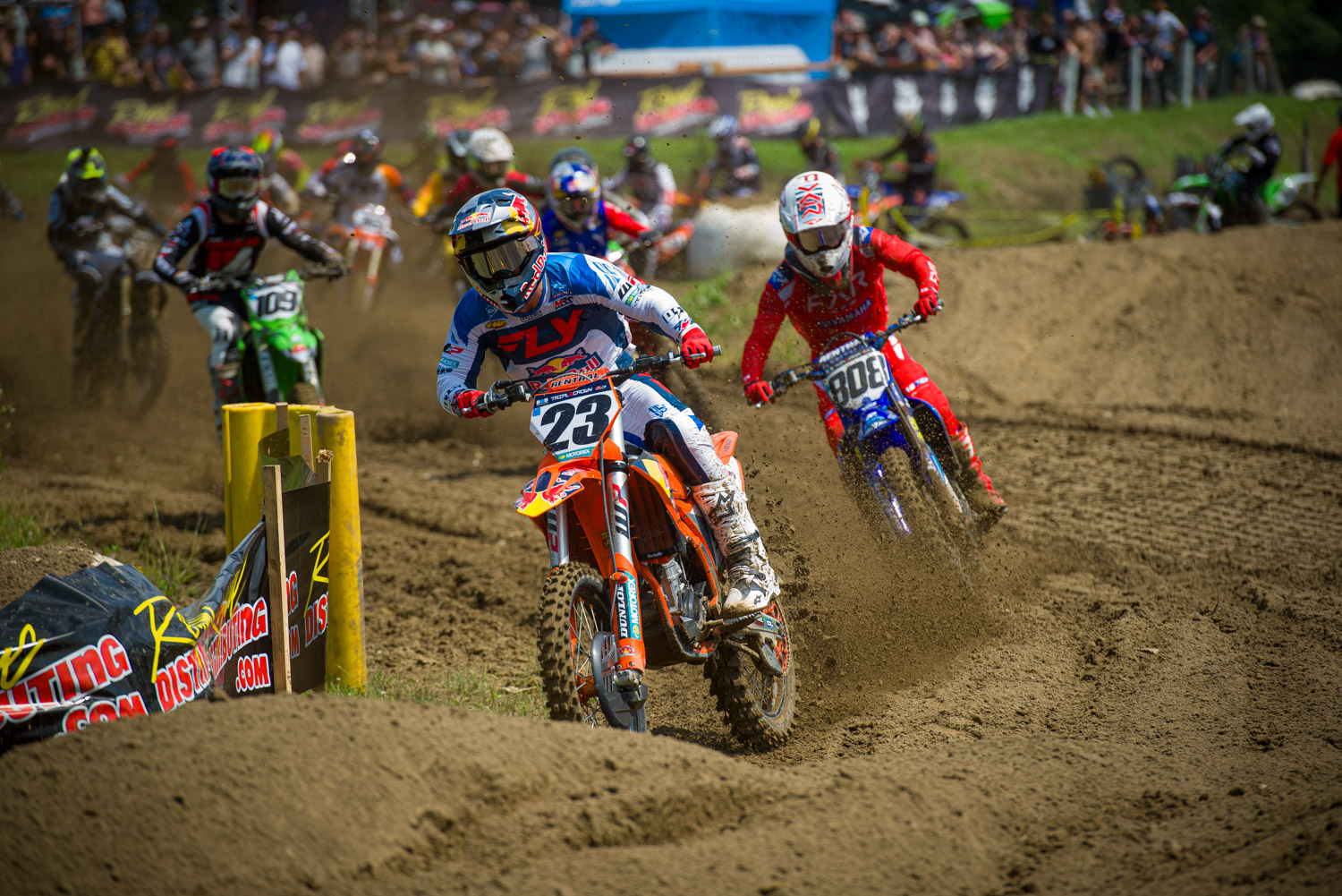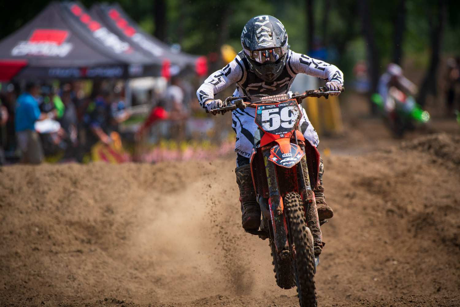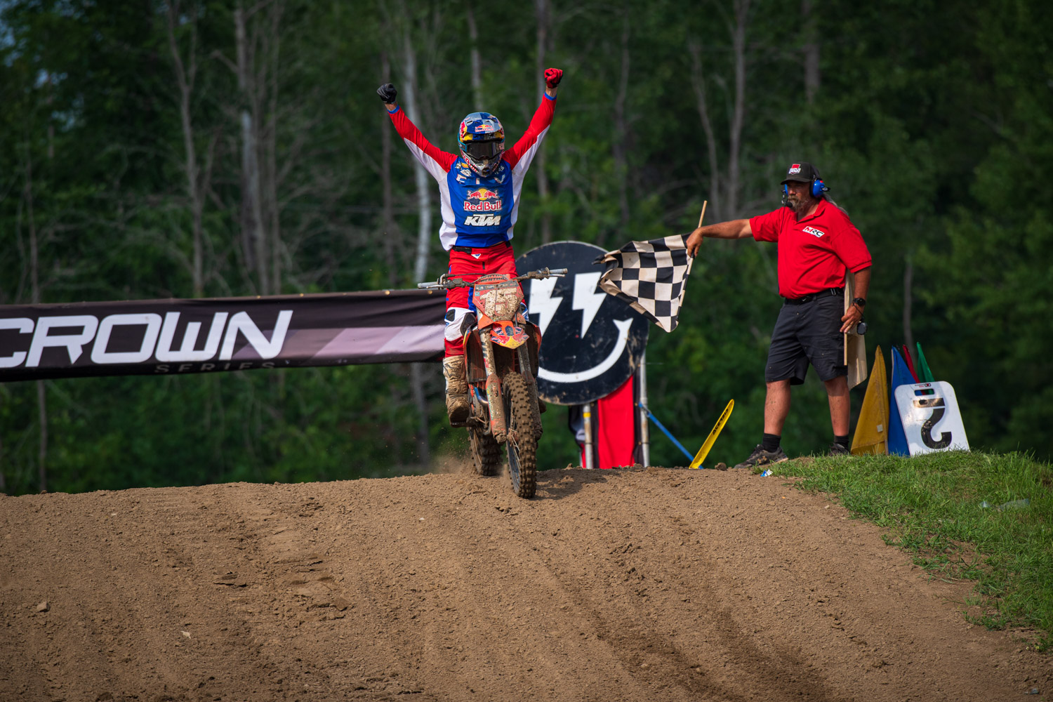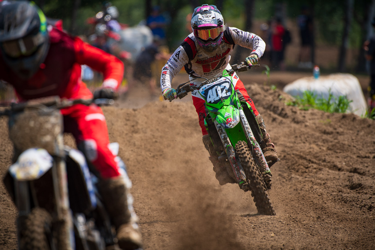 Pettis took a hard fought second moto win, to take the overall. The tie on points for the day between him and his teammate, Natzke, means he keeps the Championship lead at 4 points for another weekend.