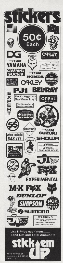 When I first got into moto in the early 1980s custom graphics were not a thing. Even one-off works bikes rarely deviated from a simple logo or manufacturer name on the tank. Back then, the most we could do to customize our ride was to add a pair of blue or red grips and plaster our rear fender with a dozen random Scott, Bell Ray, and Back Off decals. Even adding a number plate background and numbers was often a bit of an art project. Some companies like Ceet Racing offered replacement seat covers, but they were OEM replacements designed to look like the originals.