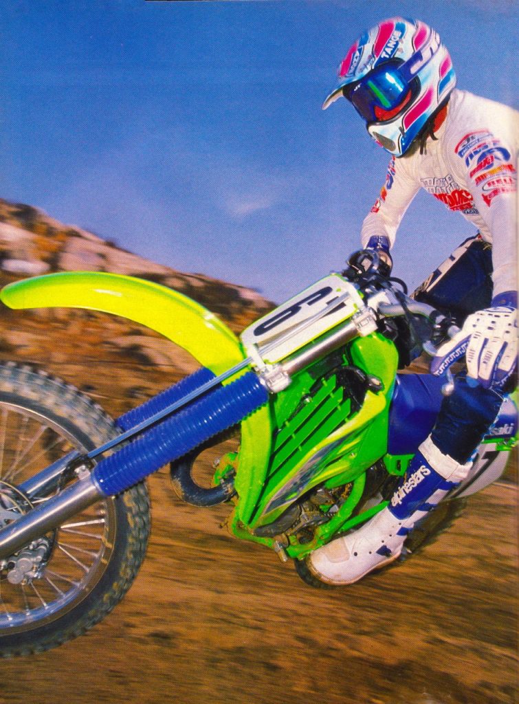 With supple suspension, excellent handling, and a broad powerband, the KX125 was competitive, but most riders found it capable rather than captivating in 1989. Photo Credit: Motocross Action