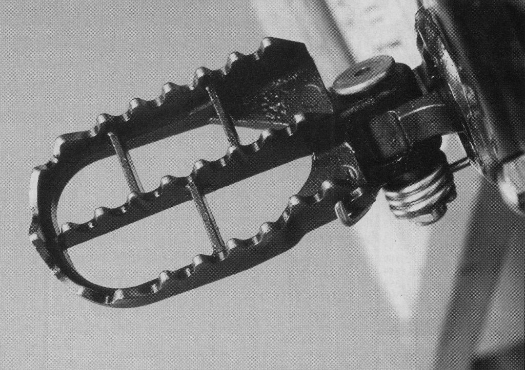 New pegs for 2000 increased rider comfort by adding a third reinforcement down the middle and extending the with of the pegs by 6mm. Photo Credit: Suzuki