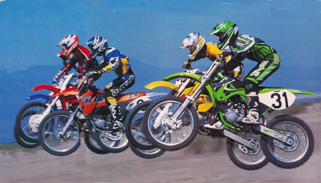 In 2000, the biggest news in the 125 class was the arrival of Honda’s second-generation alloy frame and redesigned CR125R. While the CR was much improved, its horsepower deficit to Yamaha’s YZ125 held it back from reclaiming the top spot in the minds of many. Photo Credit: Dirt Bike