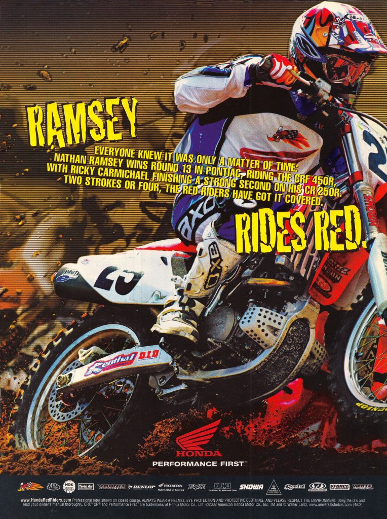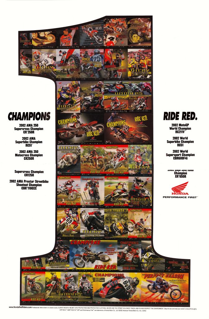 After several years of struggles 2002 was an incredible comeback year for Honda. Indoors and out, in the dirt and on the street, Honda was at the front. Photo Credit: Honda