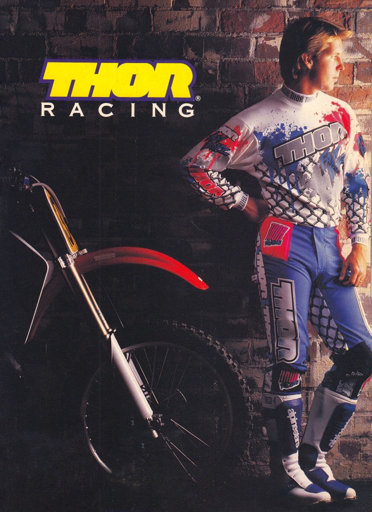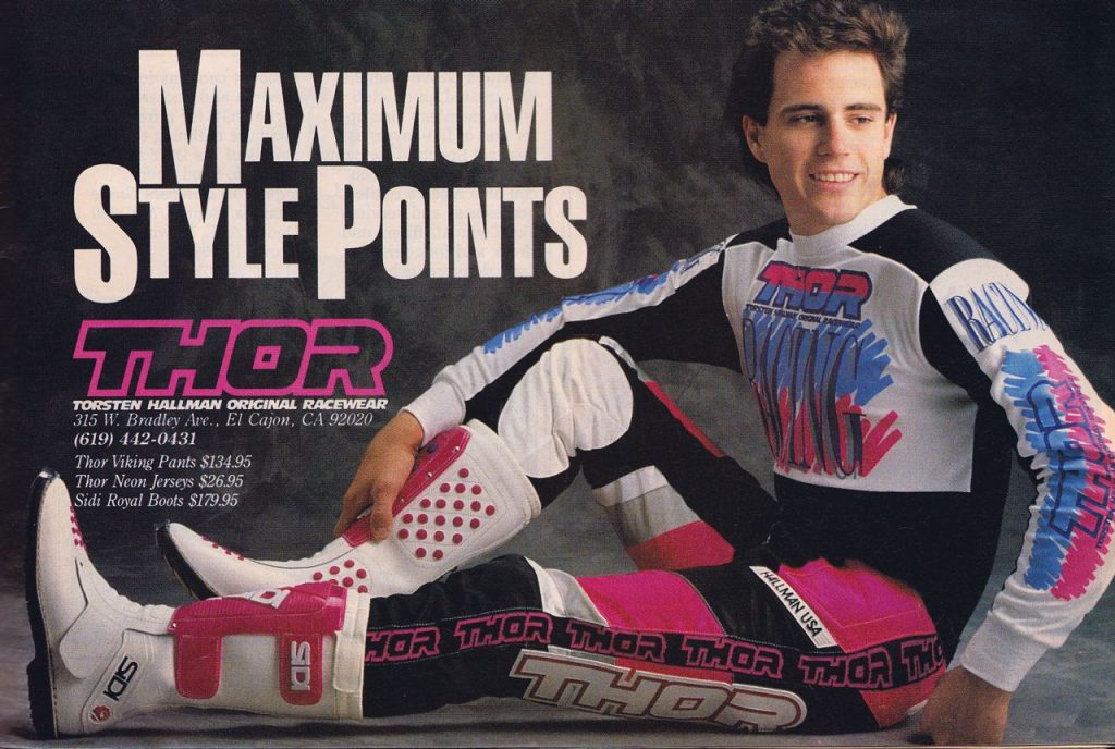 Another rebrand in 1988 added “THOR” to the motocross lexicon for the first time. Using a clever acronym of Thorsten Hallman Original Racewear, the new THOR played on Norse mythology and Hallman’s Swedish heritage to stand out in the increasingly crowded market for motocross apparel. Photo Credit: Thorsten Hallman Original Racewear