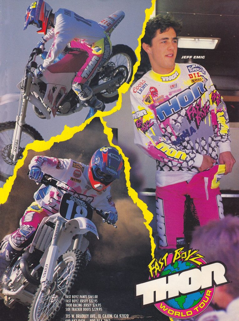 With RJ’s departure from the limelight, THOR’s focus was moved to Yamaha’s Jeff Emig, who was moved to the point man for their new Fast Boyz gear. At the time, Emig was still in the 125 class, but his speed and style on the bike were already apparent. A year later, Emig would take his THOR gear to the brand’s first AMA National Motocross championship and be catapulted into superstardom on his Steve Butler-tuned YZ125.