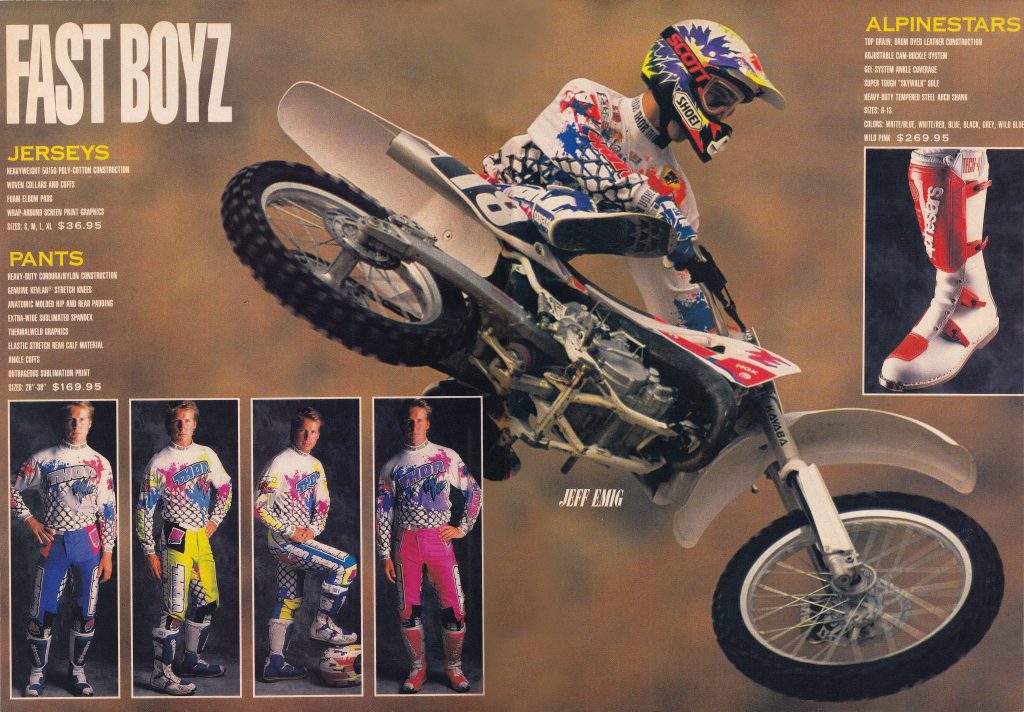 Because of RJ’s short run with the brand in 1991, the Fast Boyz look is associated far more with Yamaha’s 125 ace Jeff Emig. Photo Credit: THOR