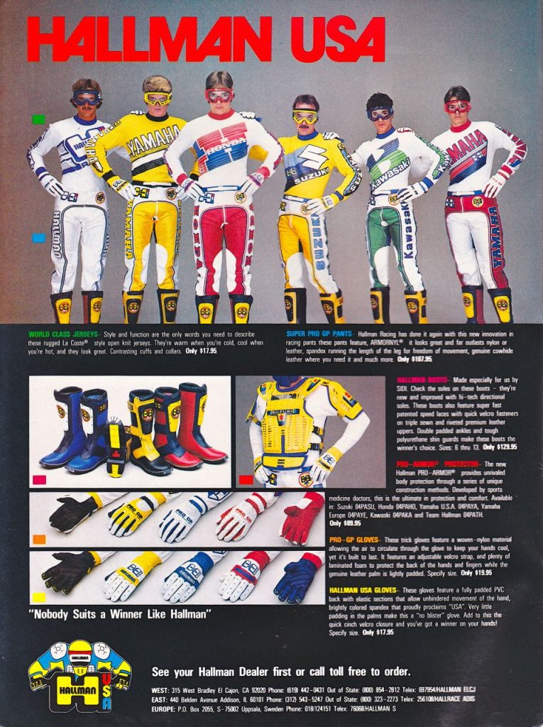 By the mid-eighties, De Coster had retired, and Torsten Hallman Racing had been rebranded as Hallman USA. Without a megastar at the front and with some questionable ad and design choices, Hallman was no longer the motocross style maker it had once been. Photo Credit: Hallman USA